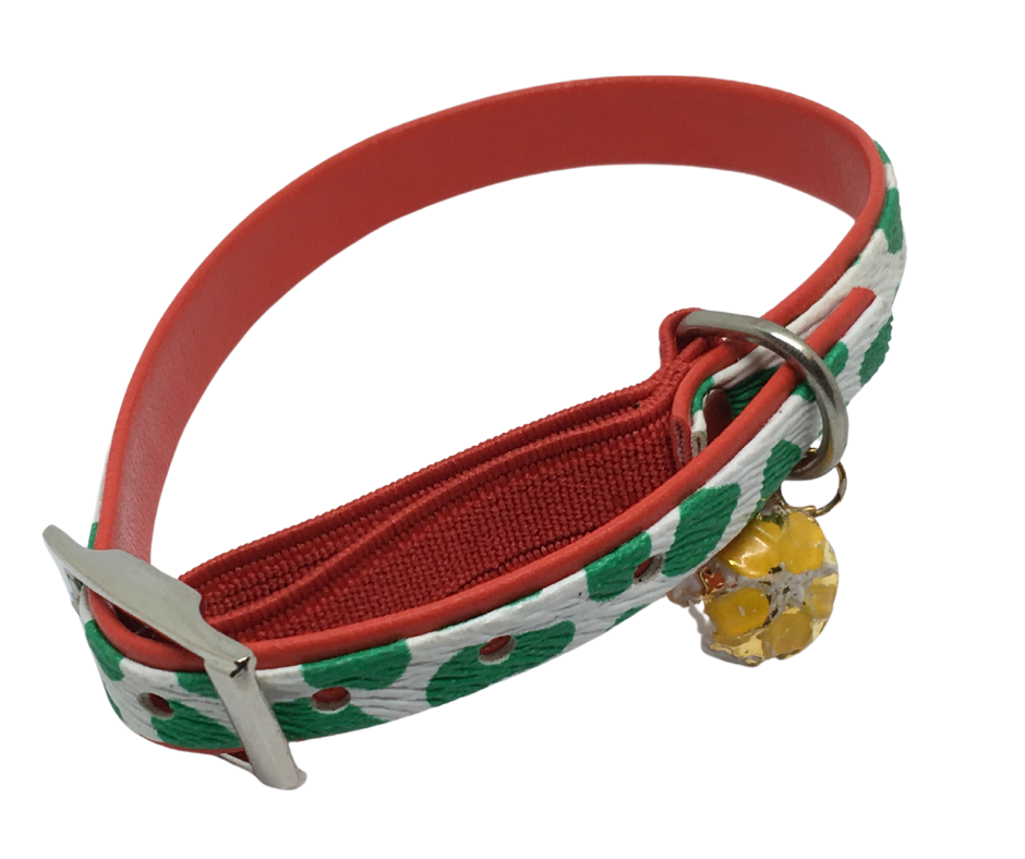 This designer cat collar not only has great detail and vibrant colours but has that important elastic safety feature near the buckle. This safe cat collar is also great for kittens (you may just need to add an extra hole and cut the excess off), it also has a loop to add any cat ID tags. With the safety feature being elastic there is no worry that a buckle on a breakaway cat collar will not release.