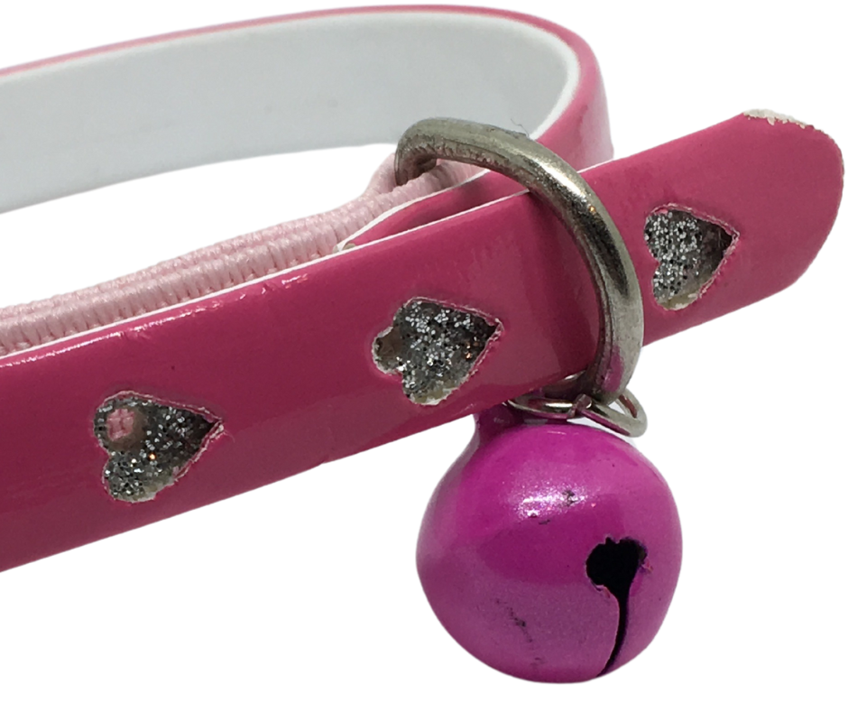 Beautiful pink cat collar with sparkly hearts. With a pink/purple bell.
