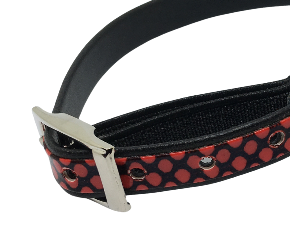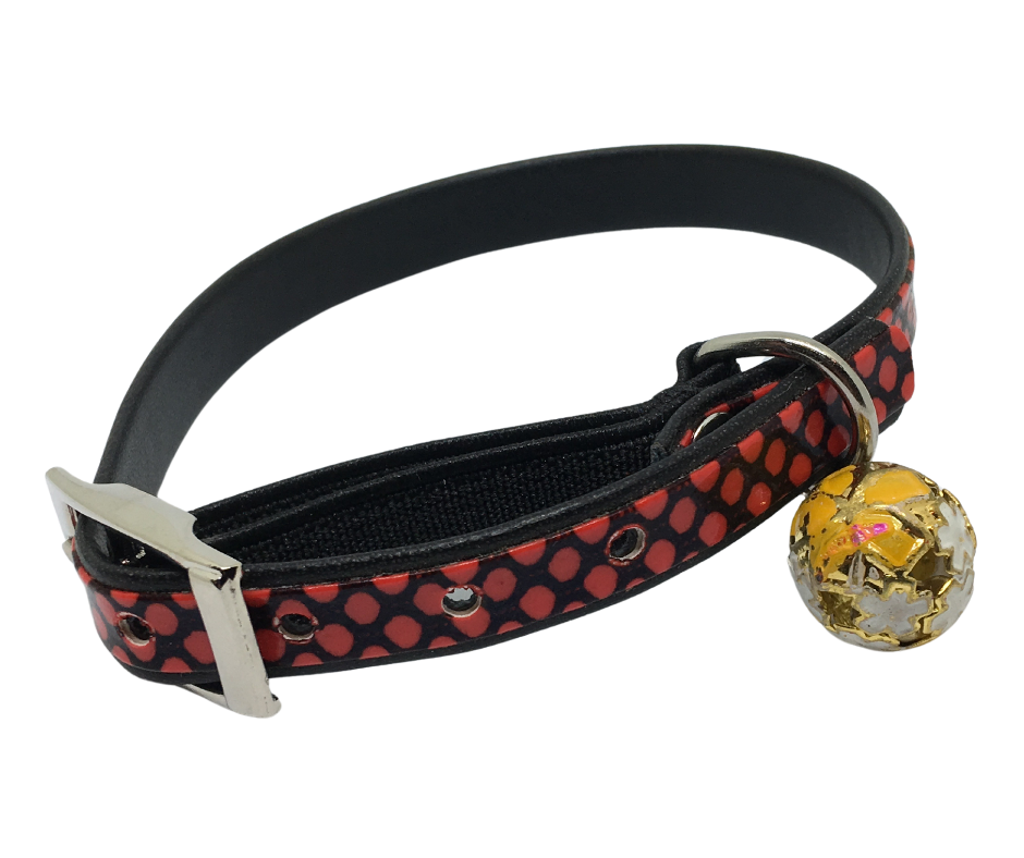 This designer cat collar not only has great detail and vibrant colours but has that important elastic safety feature near the buckle. This safe cat collar is also great for kittens (you may just need to add an extra hole and cut the excess off), it also has a loop to add any cat ID tags. With the safety feature being elastic there is no worry that a buckle on a breakaway cat collar will not release.